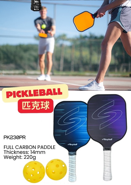 PKBRO Pickle Ball 匹克球拍套裝 型號: PK230PR 套裝包括2塊拍, 2個波, 1個拍袋 球板材質: Full Carbon Thickness : 14mm Weight: 220g